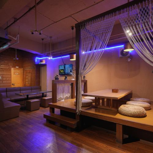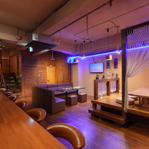 こだわりの内装が彩る店内は、テーブル・ソファ・カウンターと多彩な席タイプをご用意◎貸切も可能でカラオケ完備♪ デートから大人数のパーティーまで、幅広いシーンに対応できる使い勝手の良さが魅力です!